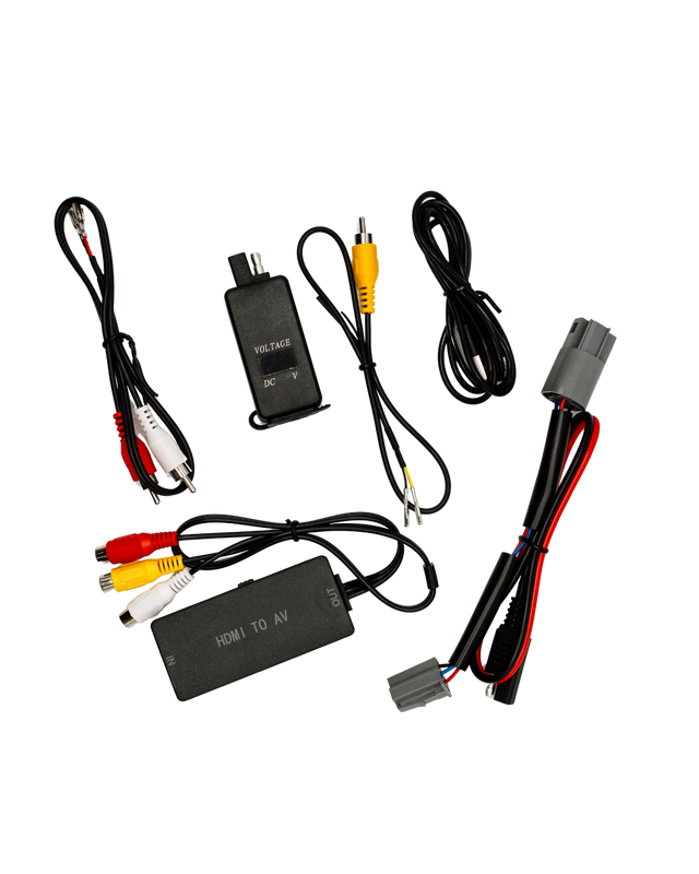 This is a plug and play kit for adding an HDMI feed to your Uconnect radio. It contains the HDMI-to-analog converter, 12v-USB dual power supply and all wires and harnesses to make adding video easy.